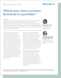 Overall, the analysis confirms that diversification across asset classes produces better and more stable portfolio outcomes. Mesirow’s Core Asset Class framework offers a strong foundation, while carefully selected supplemental assets can further improve risk-return efficiency.