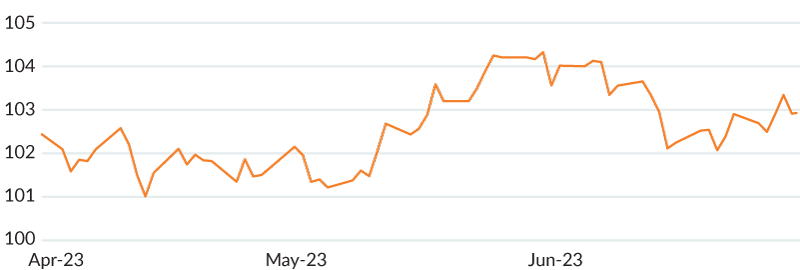EUR | Euro landed in the upper half of the G10, with strong performance against US dollar last month resulting in a relatively stronger quarter. Although economic data surprised to the downside (1Q23 GDP revised downward into a technical recession) and headline inflation decelerated further (flash rate at 5.5% YoY in June), a hawkish ECB supported Euro with two 25bps hikes in 2Q23, bringing rates to 3.5%.