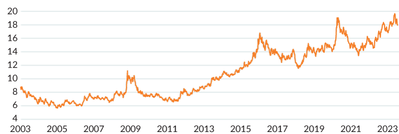 FIGURE 2: USD–ZAR | JANUARY 1, 2003 – JUNE 30, 2023
