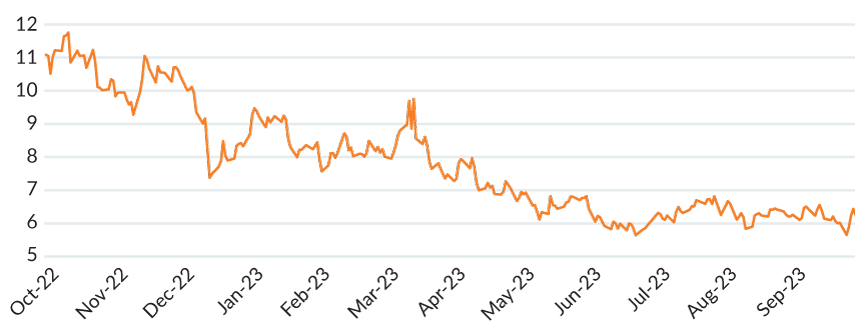 FIGURE 2: MCM'S GLOBAL VOLATILITY INDICATOR: OCTOBER 2022 – SEPTEMBER 30, 2023