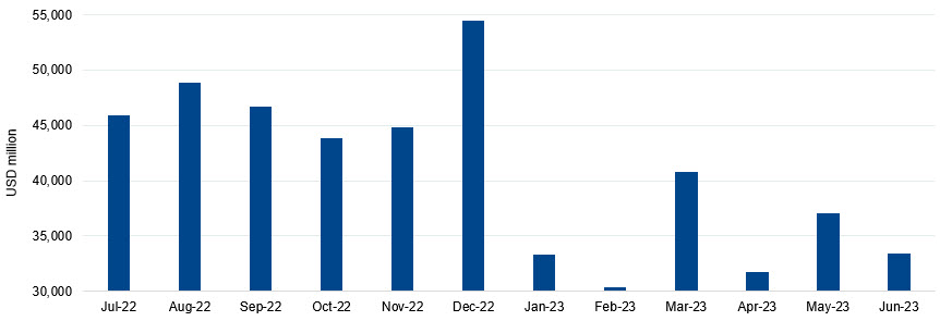 FIGURE 2: RUSSIAN EXPORTS IN USD MILLION (JULY 2022–JUNE 2023)