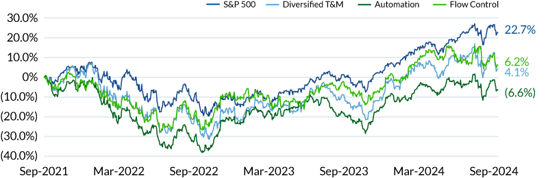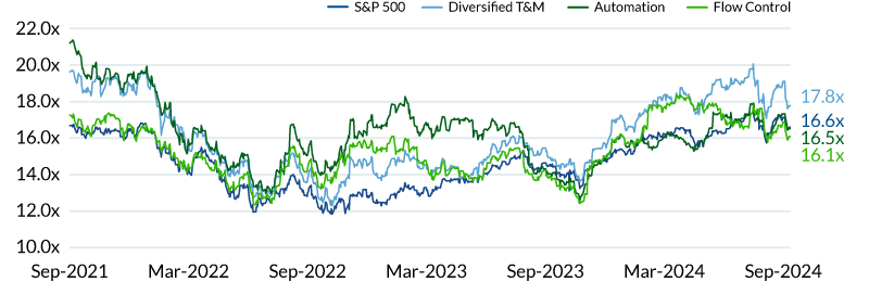 Valuations in the Test & Measurement and Industrial Automation (TM&IA) sector continue to track the broader market with current valuations above the trailing 3-Year average (Chart 1).