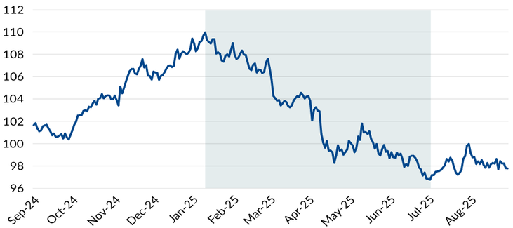 FIGURE 1: DXY SEPTEMBER 2024 – AUGUST 2025