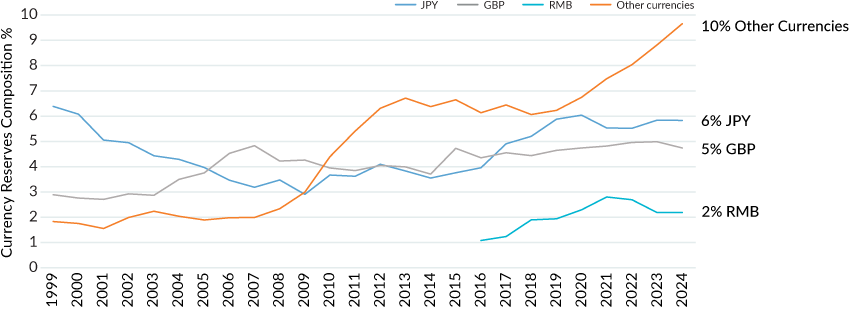 CHART 3: CURRENCY COMPOSITION OF OFFICIAL FOREIGN EXCHANGE RESERVES (1999 – 2024)