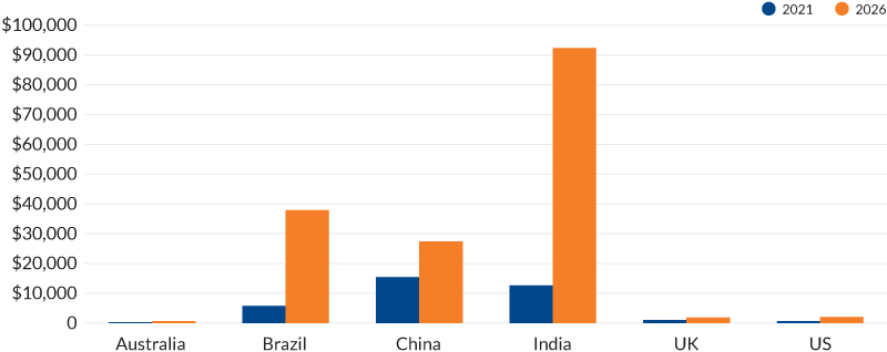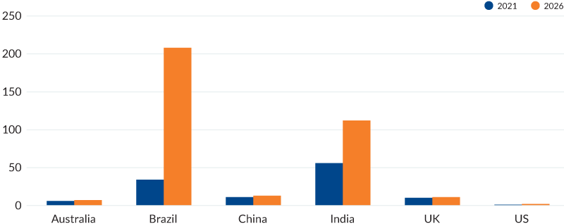 | Country | 2021 | 2026 (estimated) |