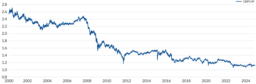 Figure 3 presents the downward trend of the British pound against the Swiss franc, a movement spanning almost 25 years. The consistent increase in the franc means that the value of the currency component of British assets in Swiss portfolios has steadily moved lower; hedging that currency risk would, in most periods, have contributed to better investment performance.