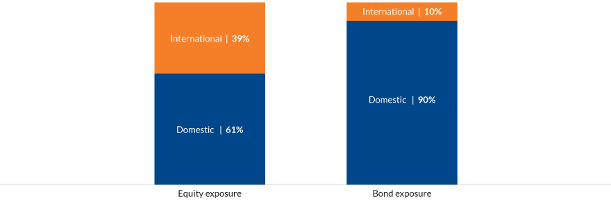 US investors, on the other hand, have a massive domestic market in which to invest; the depth and breadth of US assets lessens the need to invest internationally. Approximately 61% of US pension fund equity exposure is domestic and approximately 90% of US pension fund bond exposure is domestic (Table 1, Figure 5). With equities and bonds comprising 80% of pension portfolios, it’s easy to understand why currency hedging may not be a high priority for US fund managers.