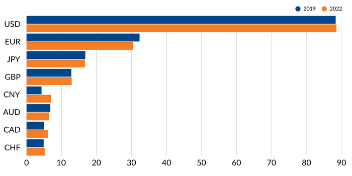 Source: Bank for International Settlements Triennial Central Bank Survey, April 2022. | bis.org/statistics/rpfx22_fx.htm
