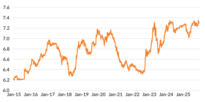 FIGURE 3: US DOLLAR – CHINESE YUAN 2015 – 2025
