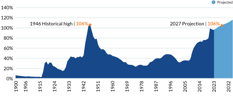 FIGURE 1: US DEBT HELD BY THE PUBLIC, 1900 to 2034 | % of GDP