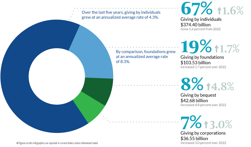 Source: Giving USA 2024 Annual Report | * All figures on this infographics are reported in current dollars unless otherwised noted.